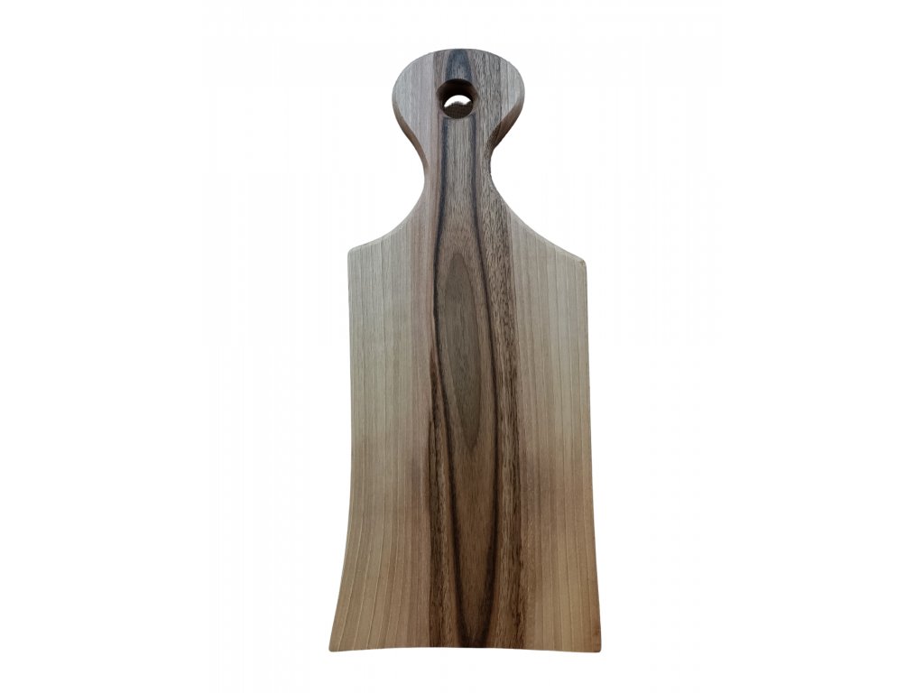Doska je z jedného kusa dreva a nie je nijako dodatočne farebne upravovaná. Domov vám príde ošetrená prírodným olejom certifikovaným pre styk s potravinami.